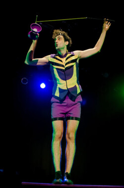 Sus piernas kilométricas, sus gestos bufonescos y su increíble capacidad para hacer el ridículo hacen de este espécimen un ser único en su tribu. Luego de renunciar a sus estudios en ingeniería, decide cambiar ligeramente el rumbo y dedicarse al circo y al teatro.